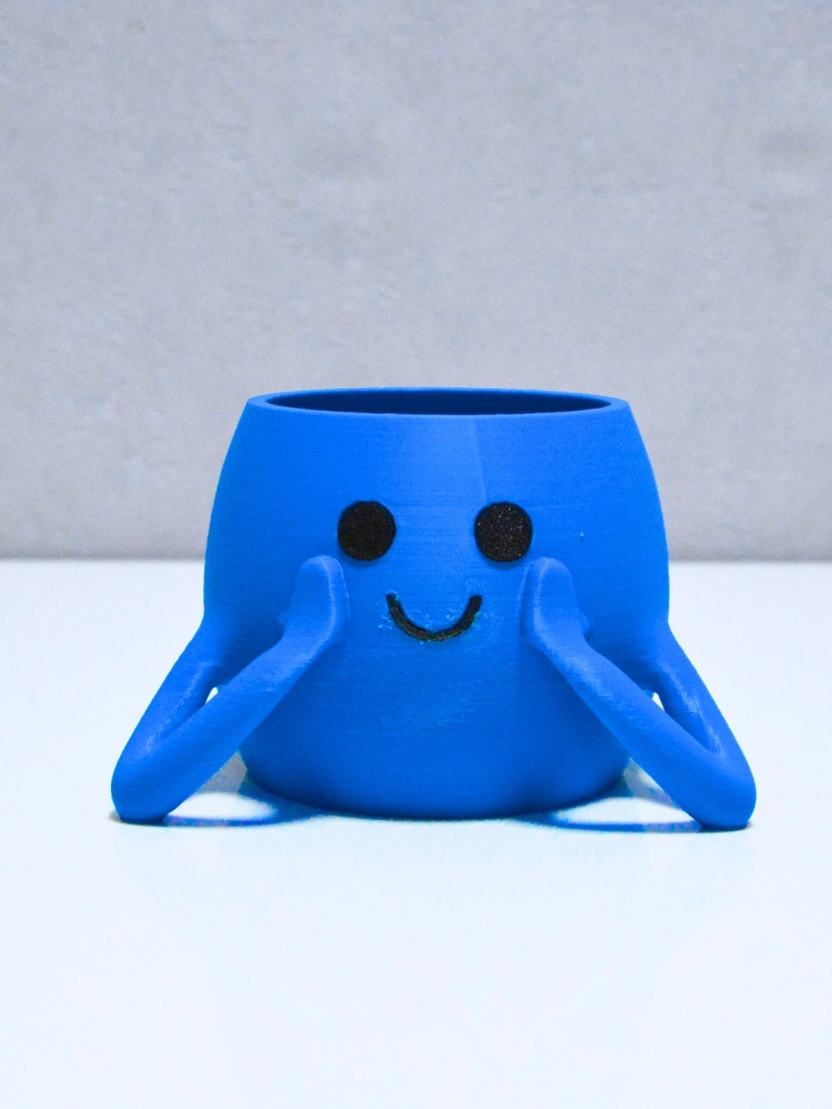 Evinizi veya ofisinizi neşelendirmek ve doğanın ferahlığını iç mekanlarınıza taşımak için mükemmel bir seçenek! Bu neşeli saksı, sevimli gülümsemesi ve şirin ayaklarıyla hem eğlenceli bir dekoratif obje hem de bitkileriniz için ideal bir yuva sunar.; ; Ürün 3D yazıcıda üretilmiştir.; Malzeme olarak Pla kullanılmıştır.; ; Bu figürlerin üretim süreci, tasarım aşamasından başlayarak, her aşamada titizlikle yürütülüyor.; İlk olarak bir tasarım programında oluşturulan dijital model, yazıcının belleklerine aktarılıyor.; Ardından, katman katman inşa edilen figürler, detaylı işçilikle gün yüzüne çıkıyor.; Sonuç, bireysel tercihler ve yaratıcılıkla şekillendirilmiş, özgün ve benzersiz bir sanat eseri oluyor.; 3D yazıcılarla üretilen figürlerin en büyük avantajlarından biri de kişiselleştirme imkanıdır.; Bu teknolojiyi kullanarak kendi tasarımlarınızı veya favori karakterlerinizi yaratabilir, bunları gerçek bir obje haline getirebilirsiniz.; Bu figürler, ev dekorasyonundan oyuncak koleksiyonlarına kadar geniş bir yelpazede yer bulabiliyor.; 3D yazıcılarla üretilen bu ürünler sağlığa zararlı olmayan, kanserojen madde içermeyen filament adı verilen plastik malzemeden yüksek ısılarda üretilmiştir.