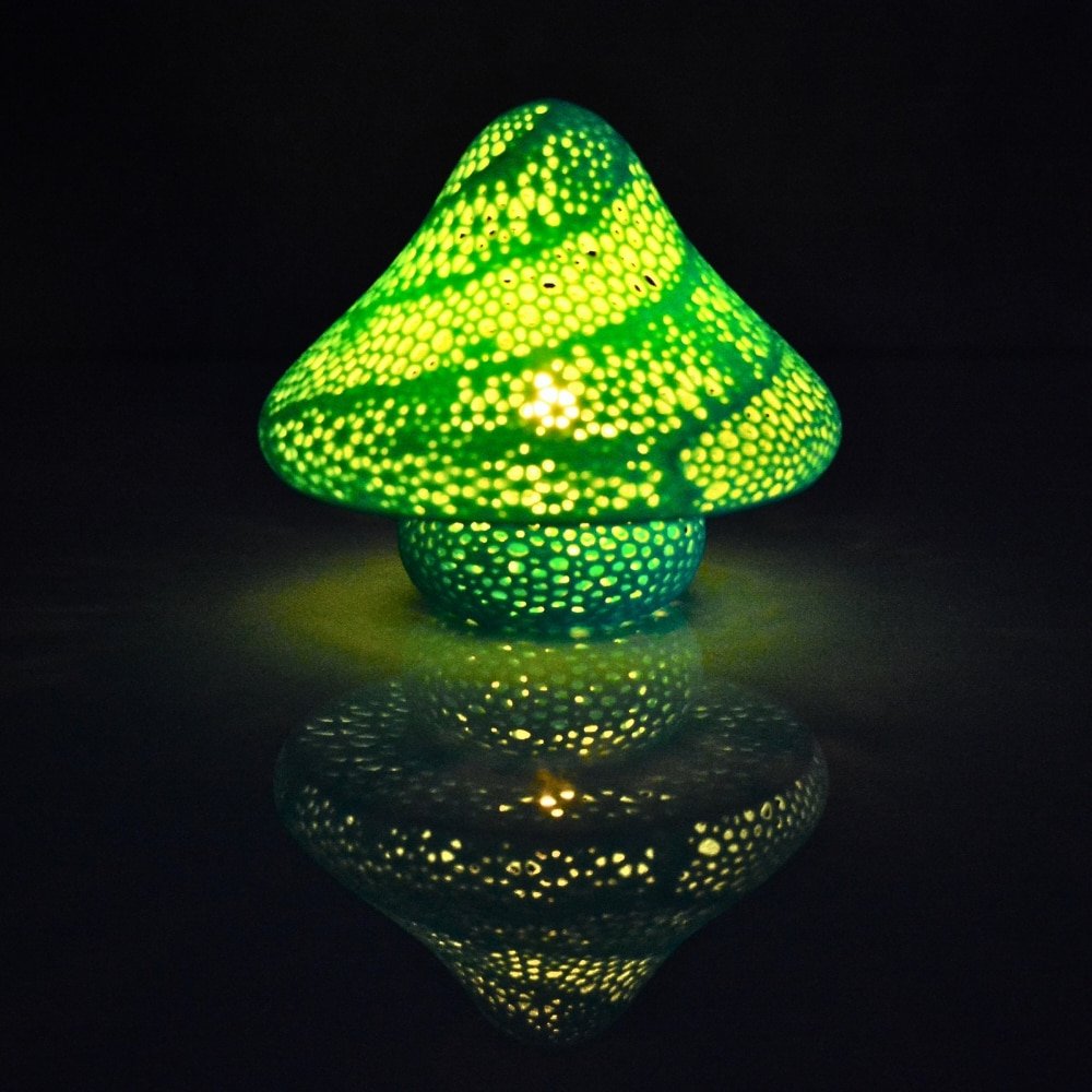 Minik boyutlu, mantar şeklindeki bu lamba; sade ama etkileyici tasarımıyla dikkat çeker. Özellikle doğa temalı dekorasyonlarda harika bir tamamlayıcıdır.
