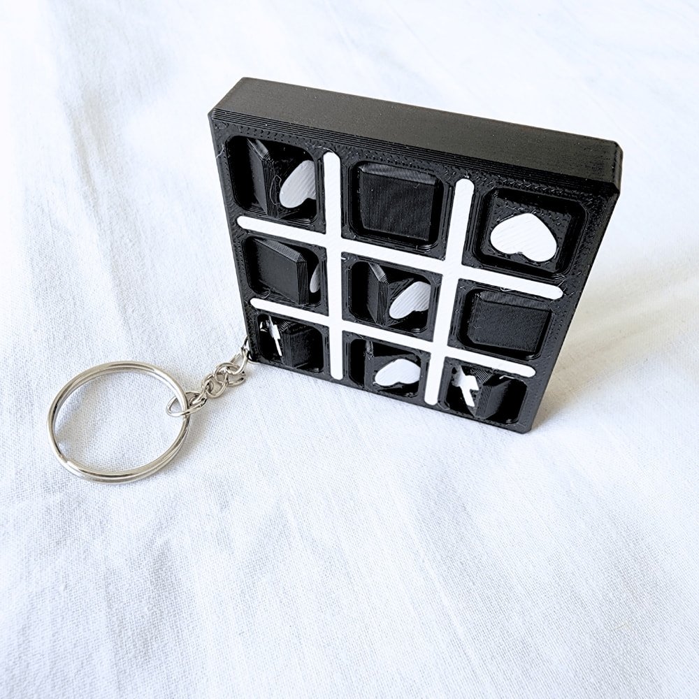 🖨️ 3D yazıcı ile üretilmiştir. Hafif ve dayanıklı yapısı sayesinde anahtarlarınızda, çantanızda veya cüzdanınızda rahatlıkla taşıyabilirsiniz. Mini boyutu sayesinde her yerde SOS (XOX) oyunu oynama imkânı sunar.