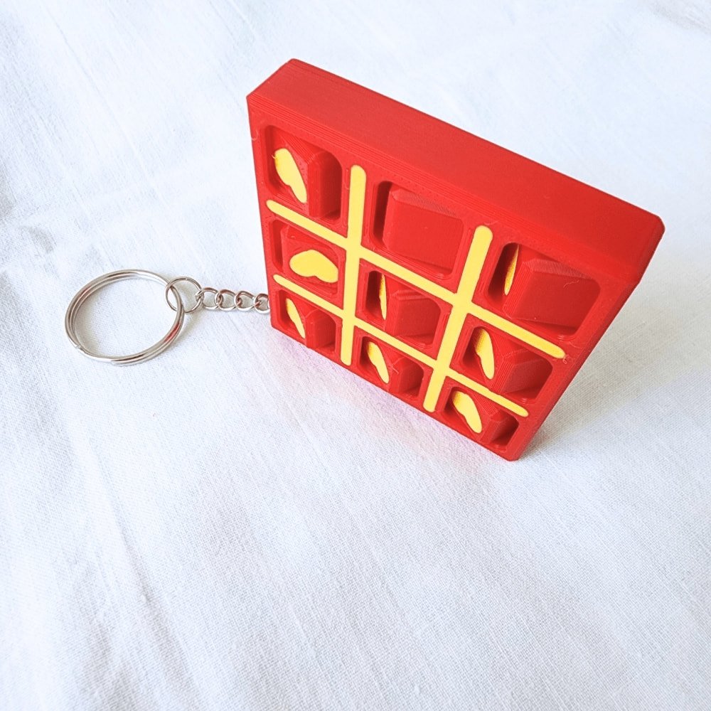 🖨️ 3D yazıcı ile üretilmiştir. Hafif ve dayanıklı yapısı sayesinde anahtarlarınızda, çantanızda veya fermuar ucunda rahatlıkla taşıyabilirsiniz. 6×6 cm boyutu ile her yerde pratik şekilde SOS (XOX) oyunu oynama imkânı sunar.